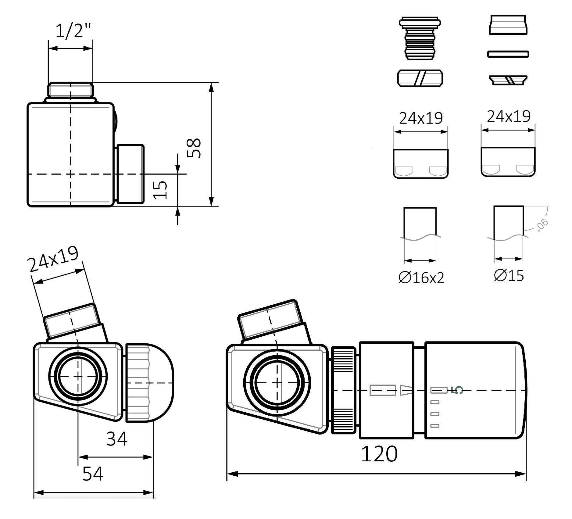 - priključne matice Cu 15 i alumplast 16x2 (24x19)