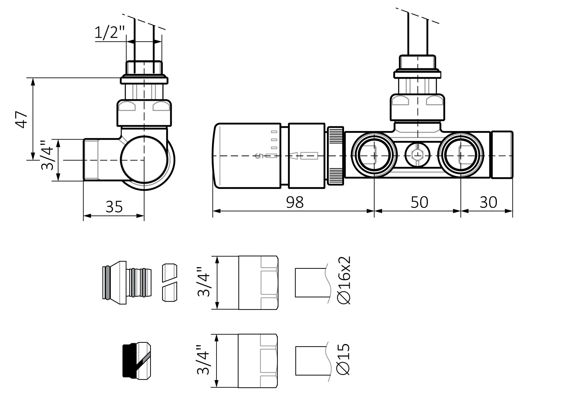 - priključne matice Cu 15 i alumplast 16x2 (3/4" EC)