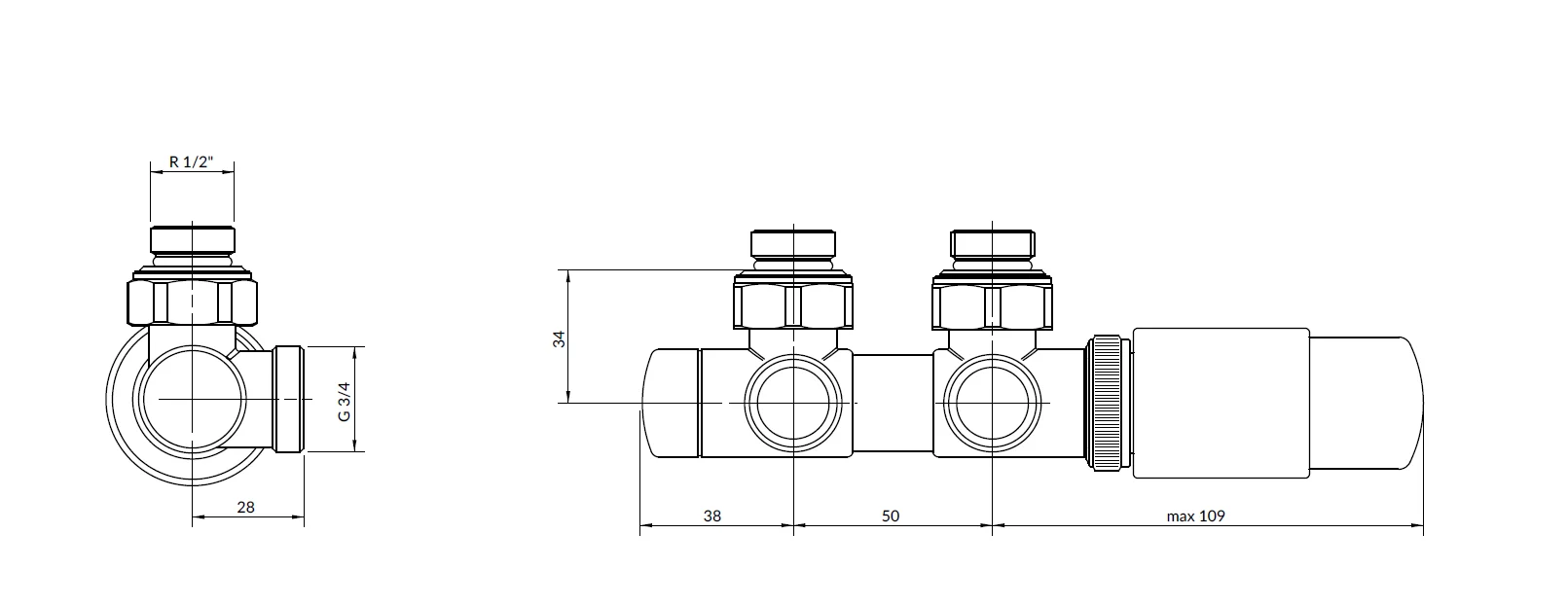 - spodnji priključni termostatski ventil