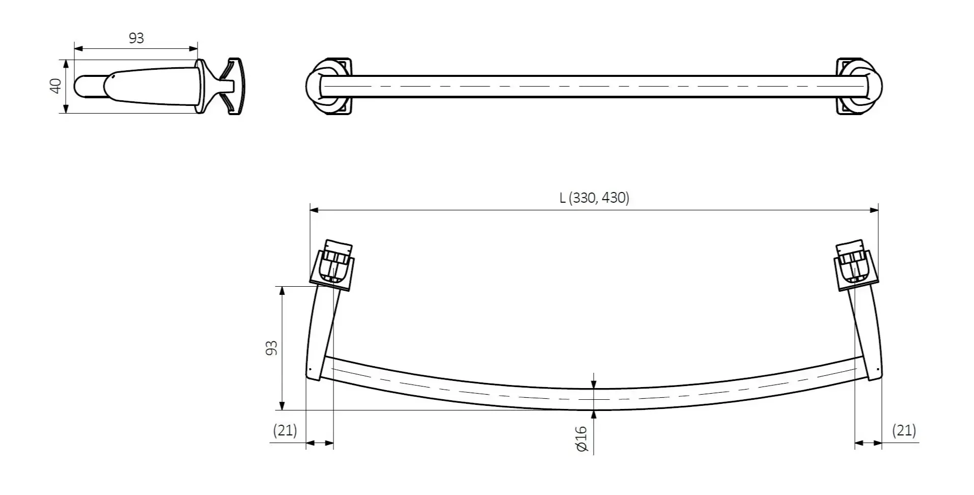 - dimenzija držača: fi 16 x 340 ili 430 mm (stvarna dimenzija može biti do 3cm kraća)
