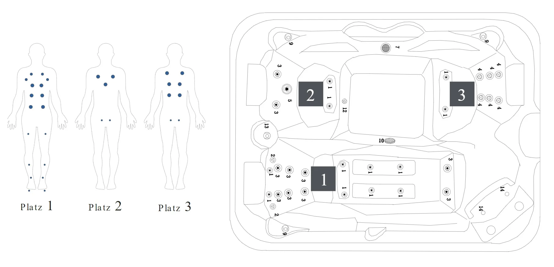 - 2 sjedišta s naslonjačima za ugodno sjedenje + 1 ležeće mjesto s naslonjačem